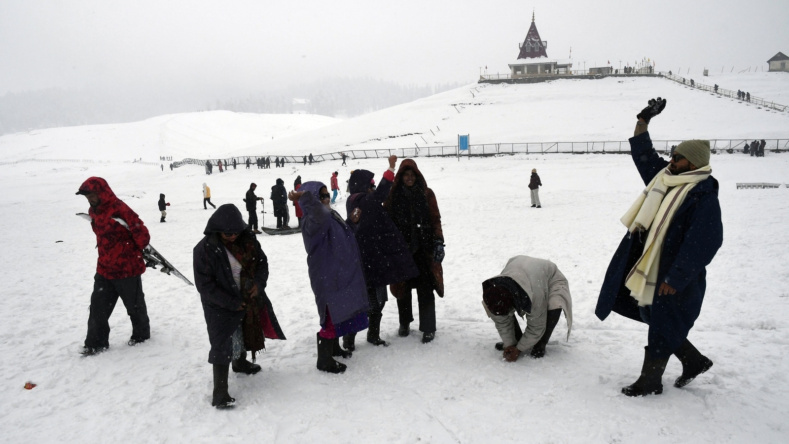 Hundreds of tourists are enjoying the snowfall at the resorts of Gulmarg and Sonamarg. (Ani)